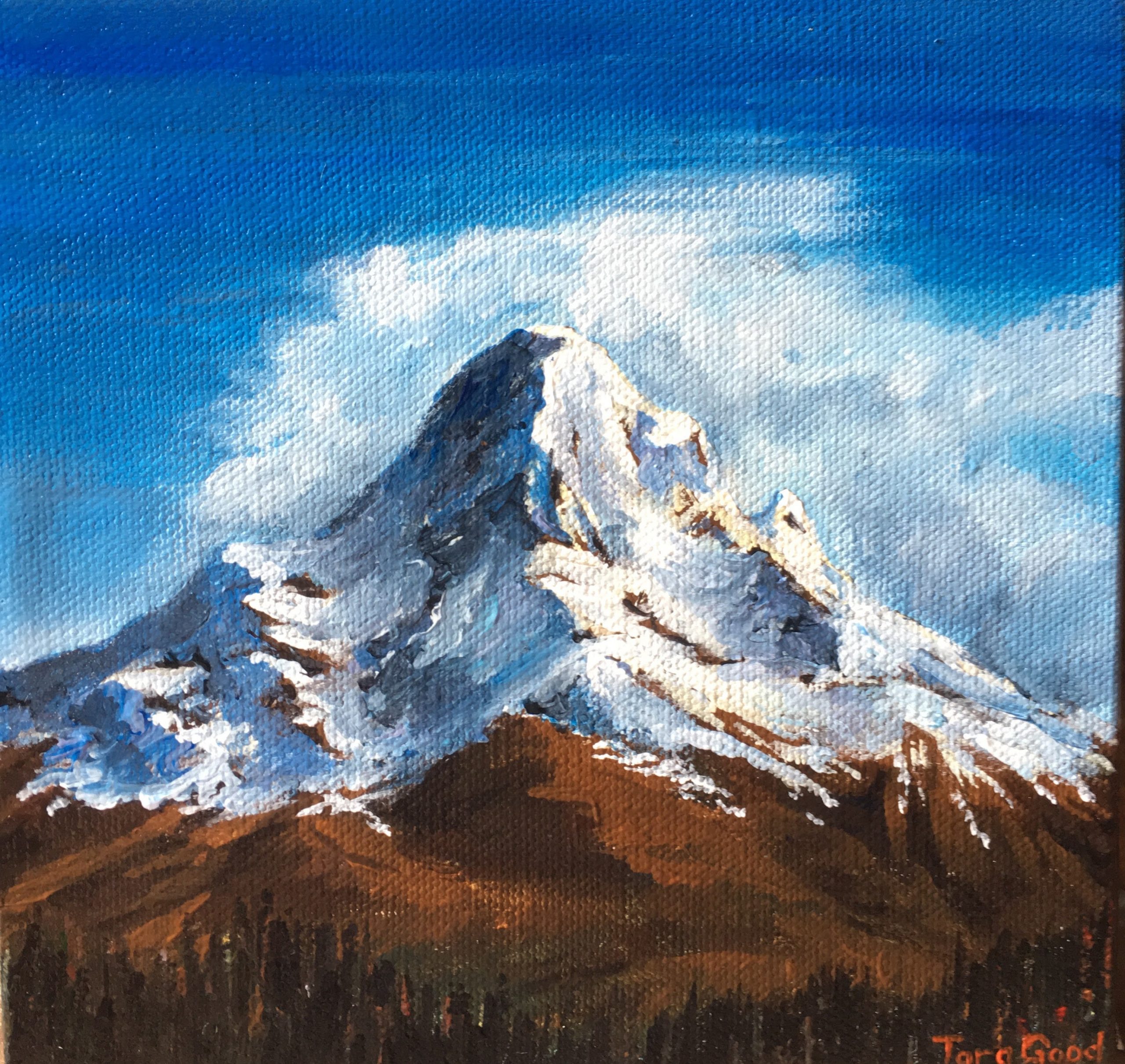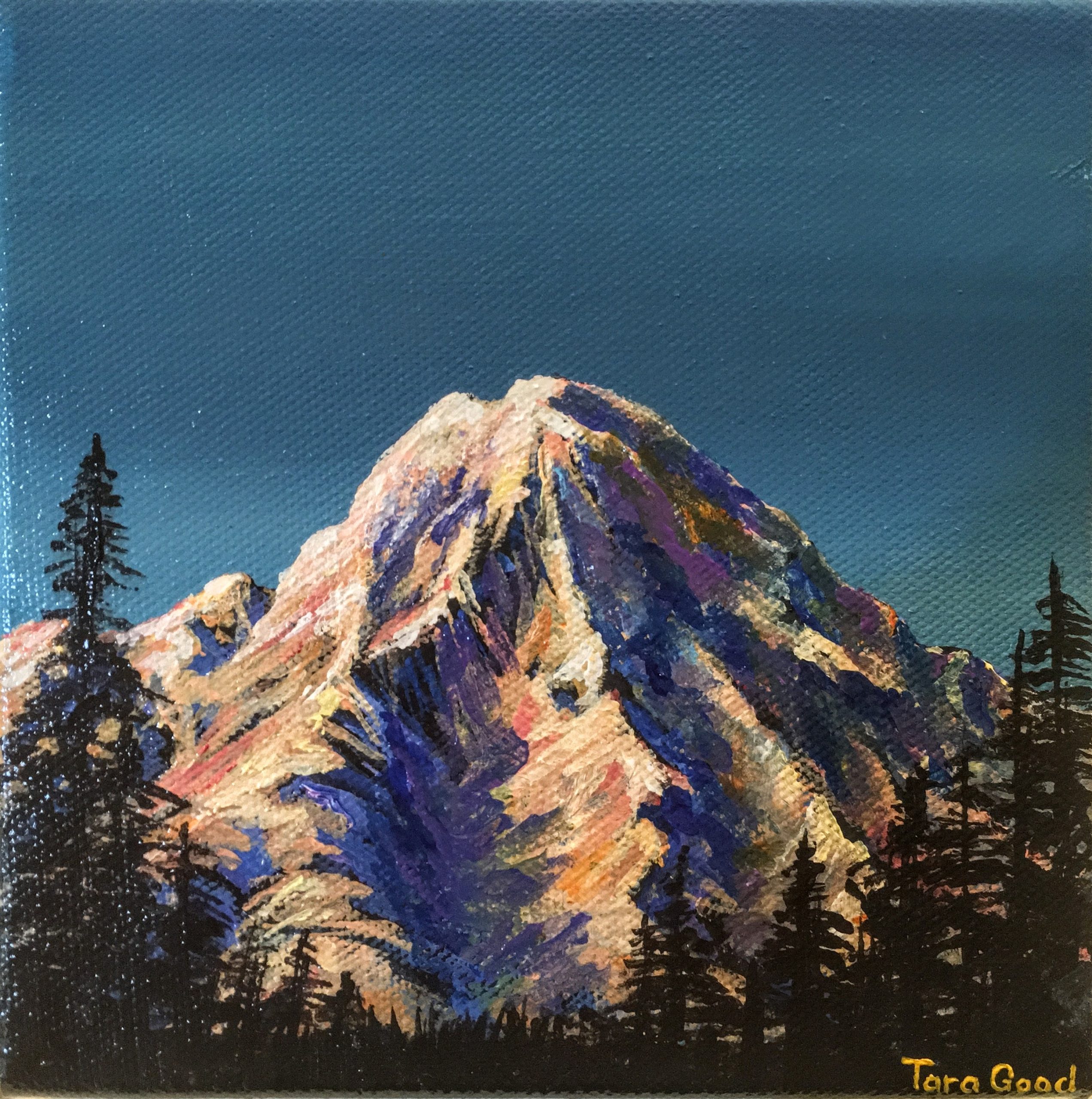 6 x 6 Acrylic on canvas. Two coats of gloss finish. $60 Contact the artist to purchase: taramariegood at gmail dot com My husband is a mountain climber, which gives me a lot of opportunities to paint mountains. Signed by the artist. Painting wraps at the edges. Does not need to be framed. Ready to … Read more