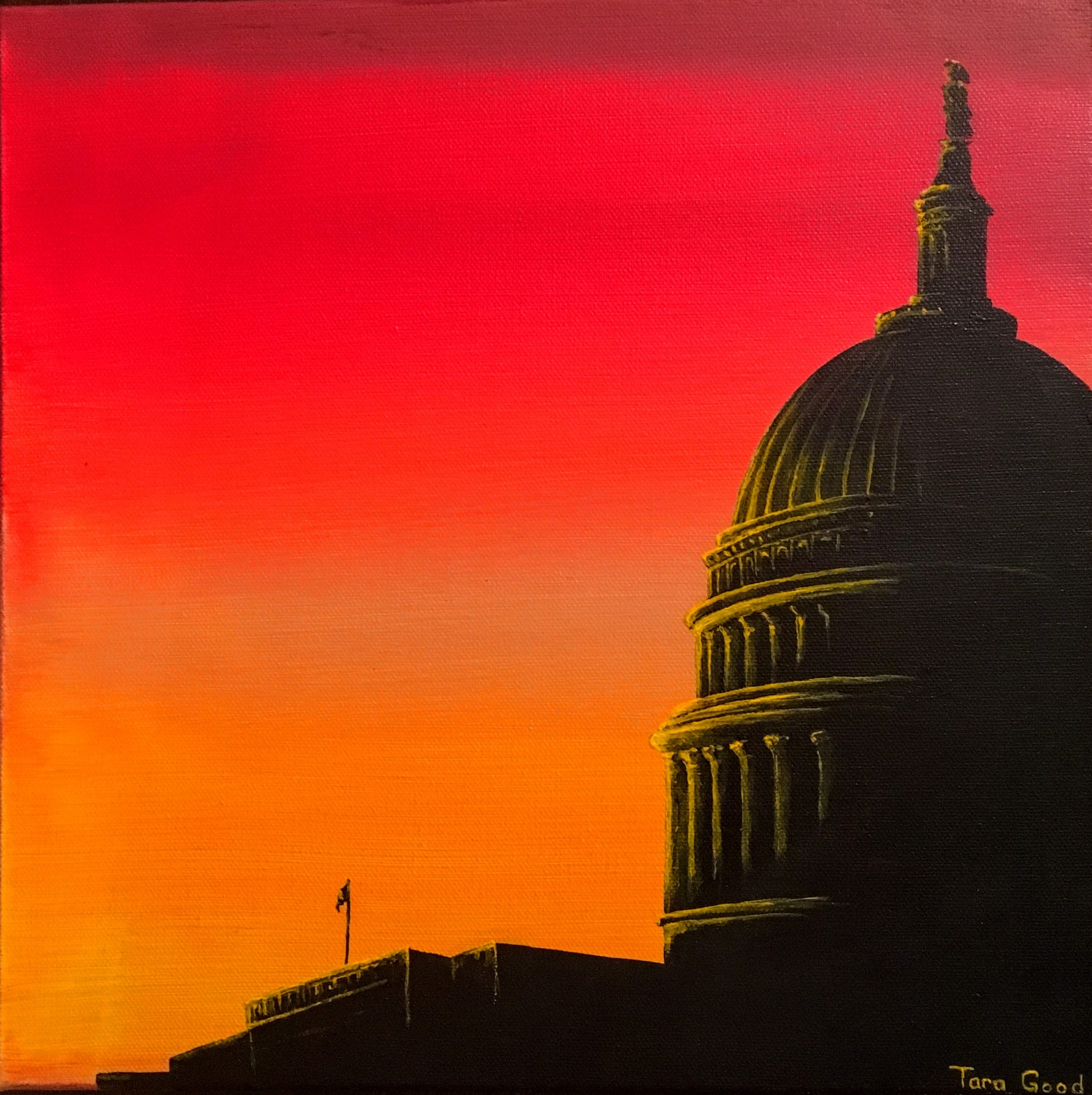 6×6 acrylic on canvas. Two coats high gloss. $40 – Purchase here Second in a series – Jefferson Memorial in Red July 21, 2017
