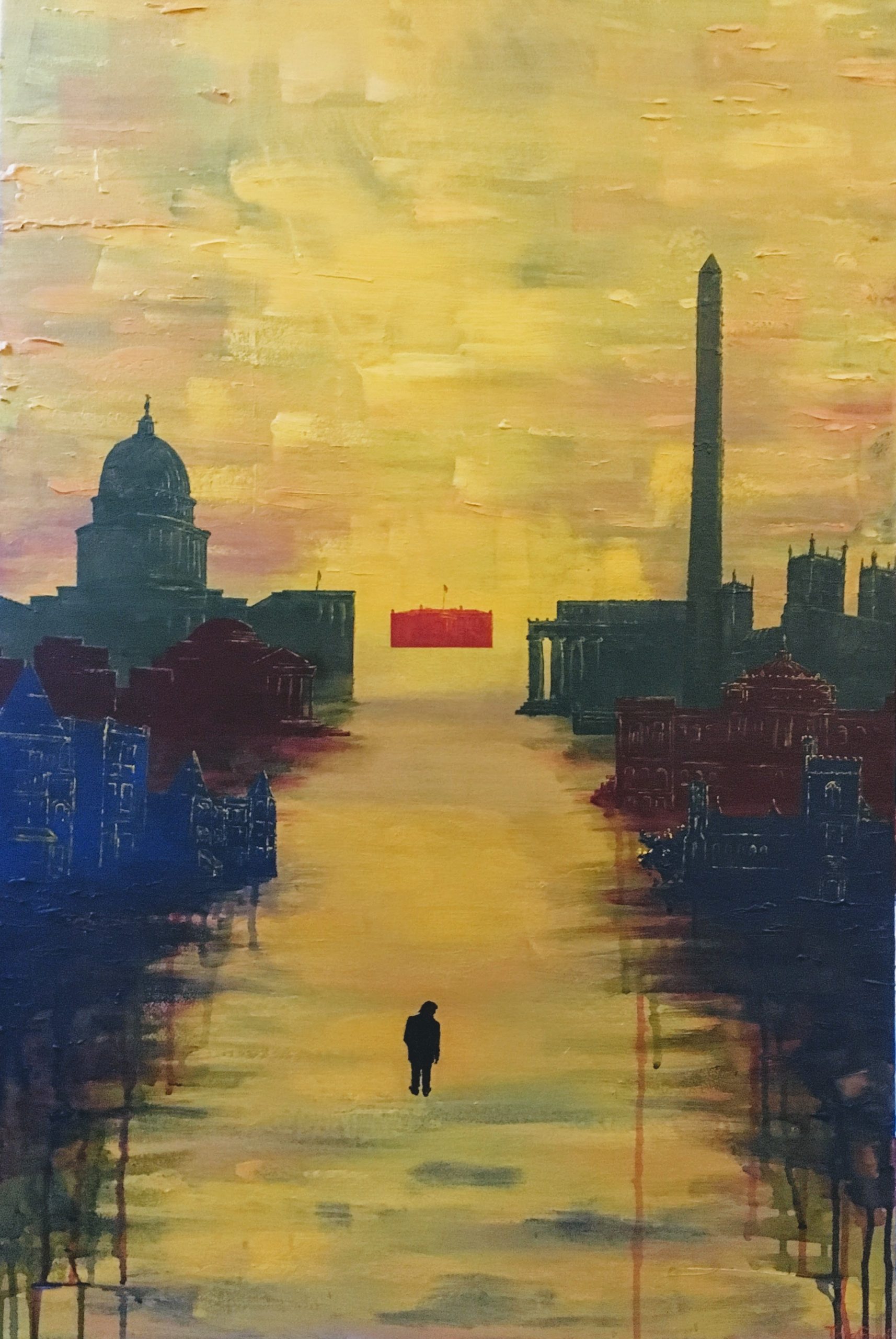 18 x 10 acrylic, high gloss. $60 Sold! As a resident of Washington DC, I created this painting the day of the 2017 inauguration. I have been interested in cityscapes for a while now. This was an opportunity to incorporate the current politics of the city with recognizable landmarks. The second in a series. See … Read more
