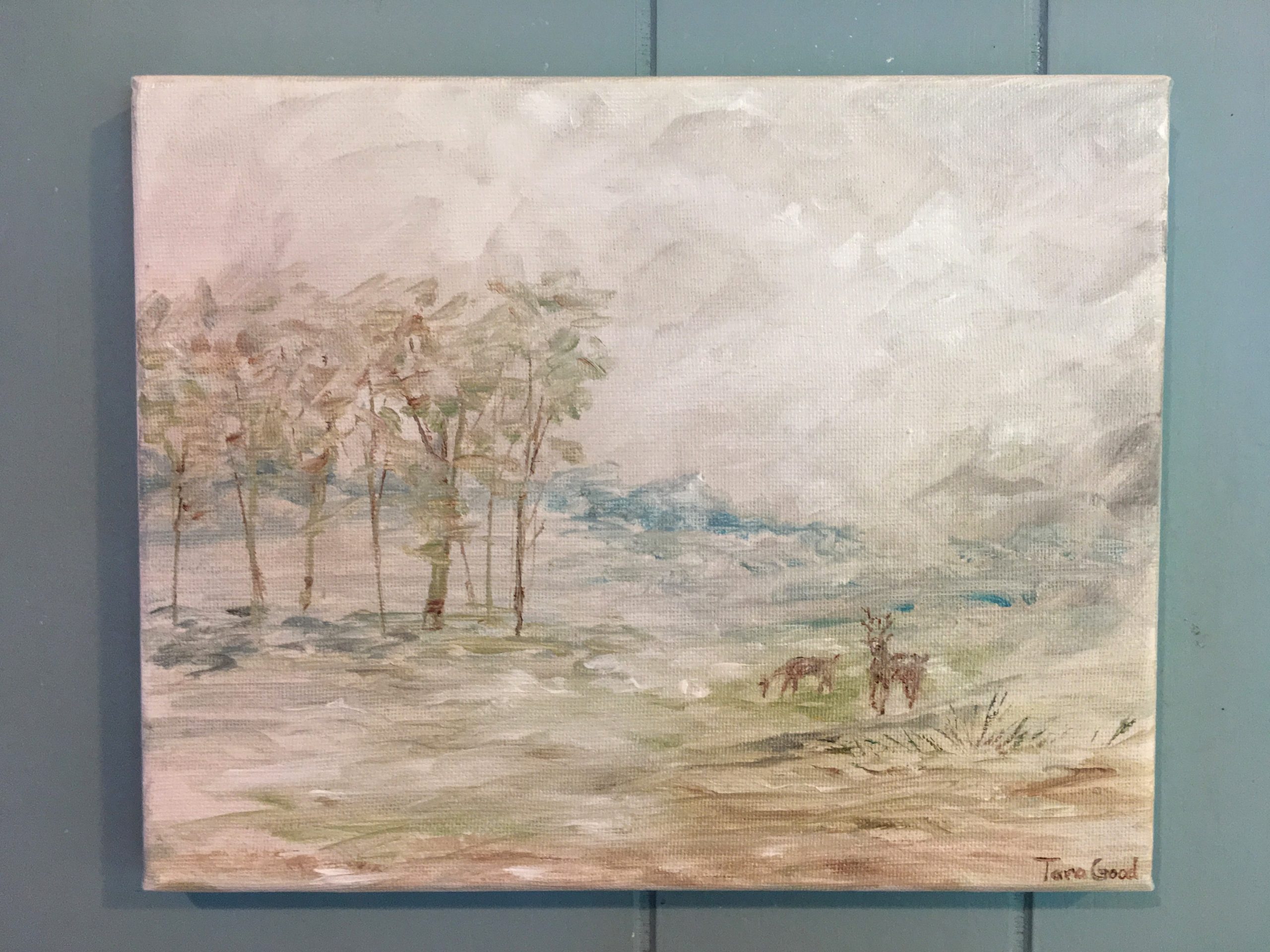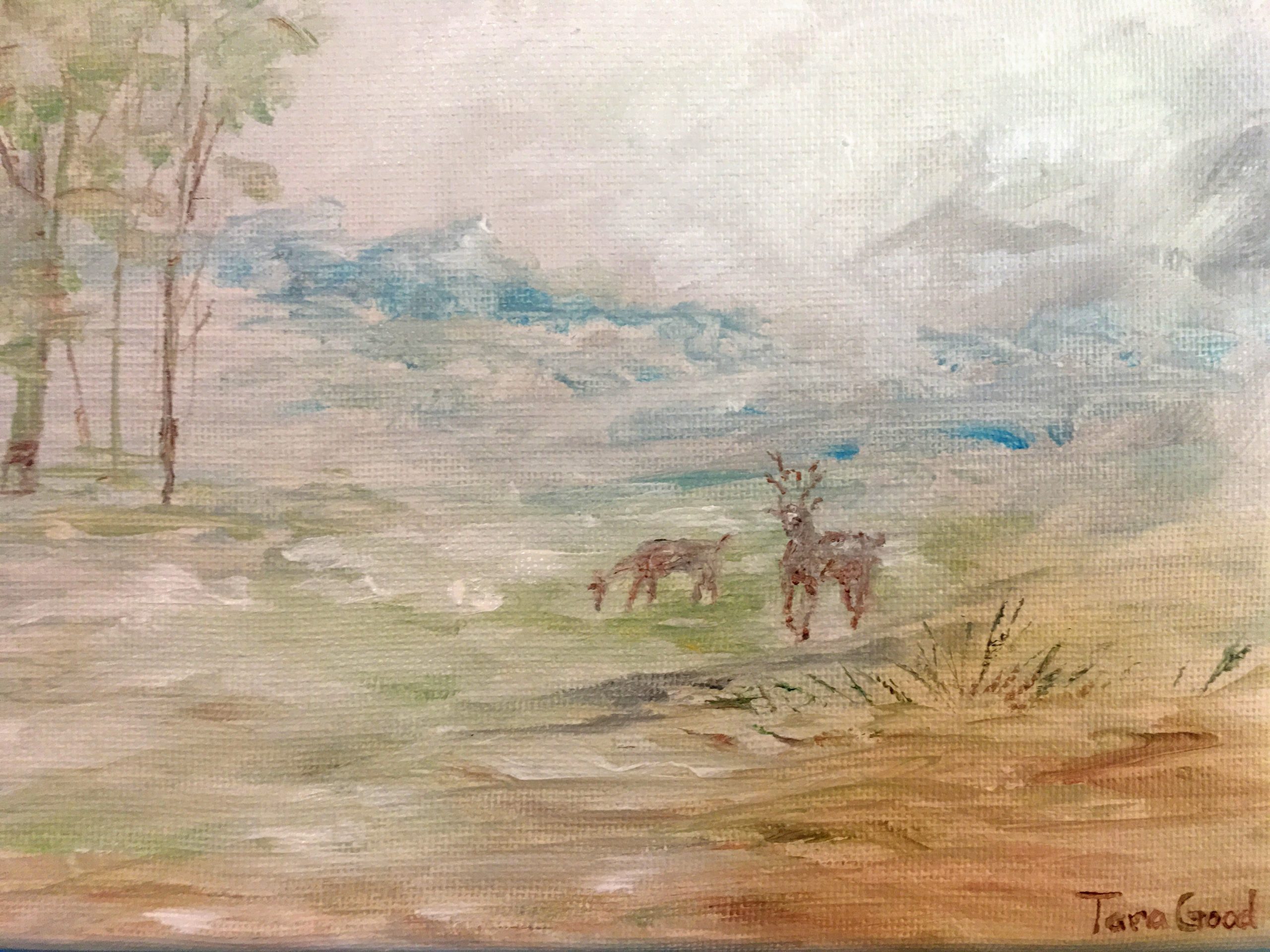 Deer in the Fog August 30, 2017 by Mari 8 x 10, Acrylic on canvas. Two coats of silk gloss finish. $70 – Purchase here August 30, 2017
