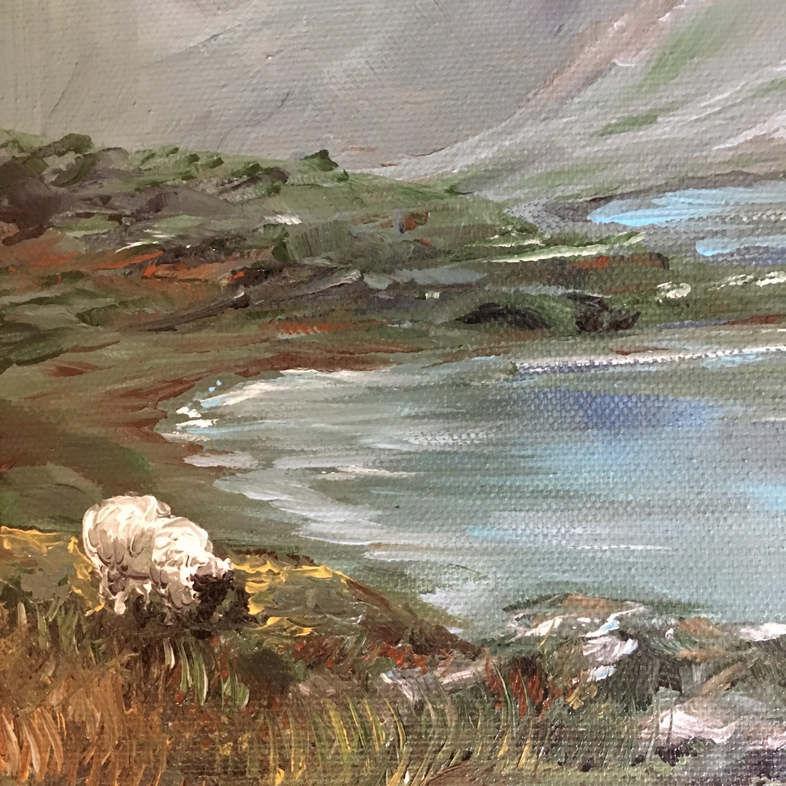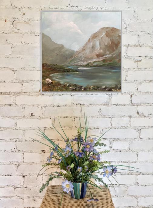 Painting wraps at the edges. Does not need to be framed. Ready to hang!