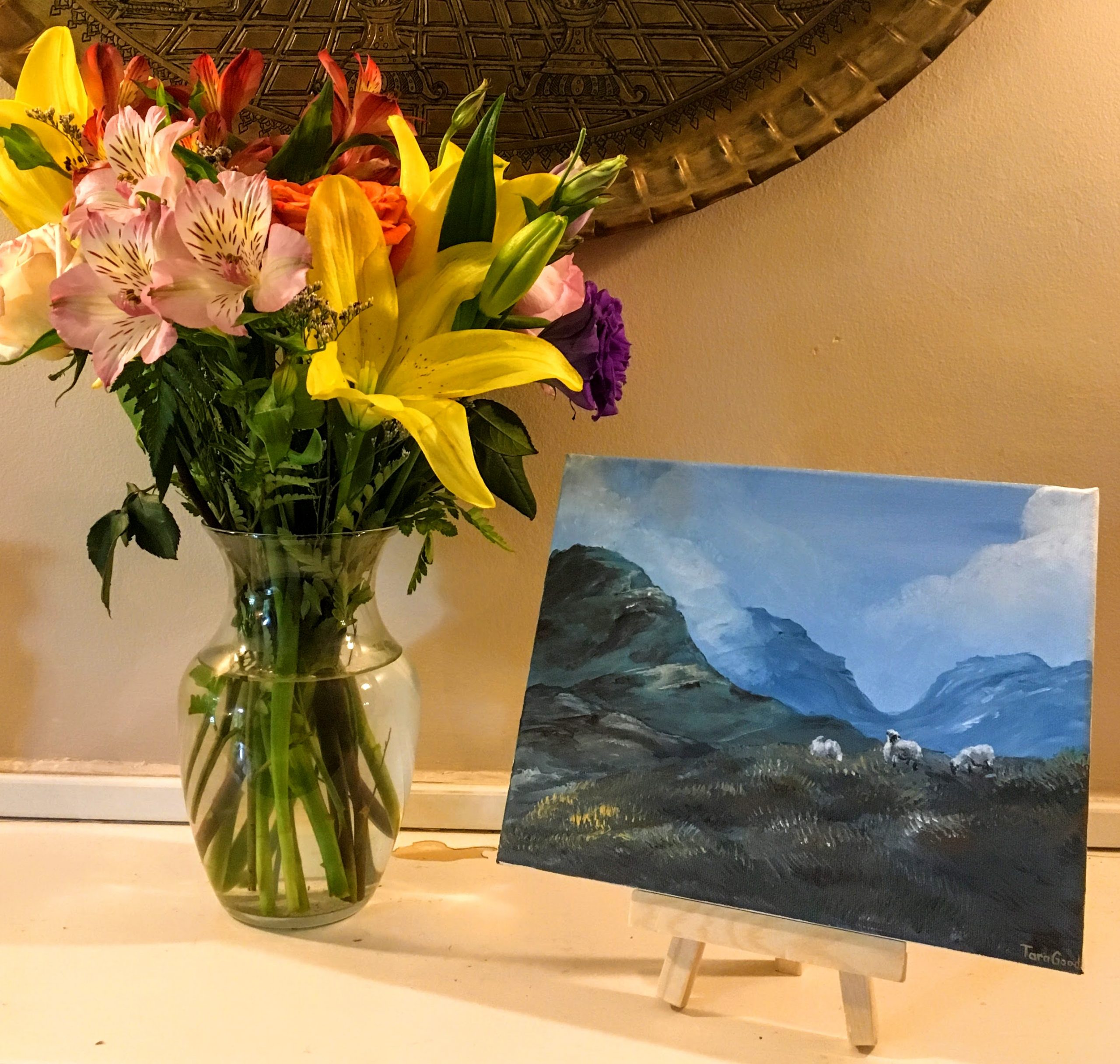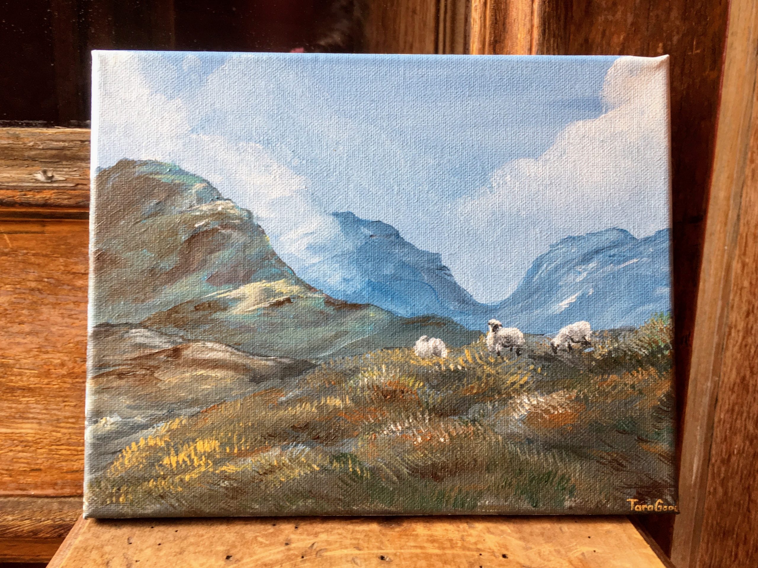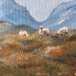 Irish Sheep August 15, 2017 by Mari 8 x 10, acrylic on canvas. High gloss finish. Sold August 8, 2017