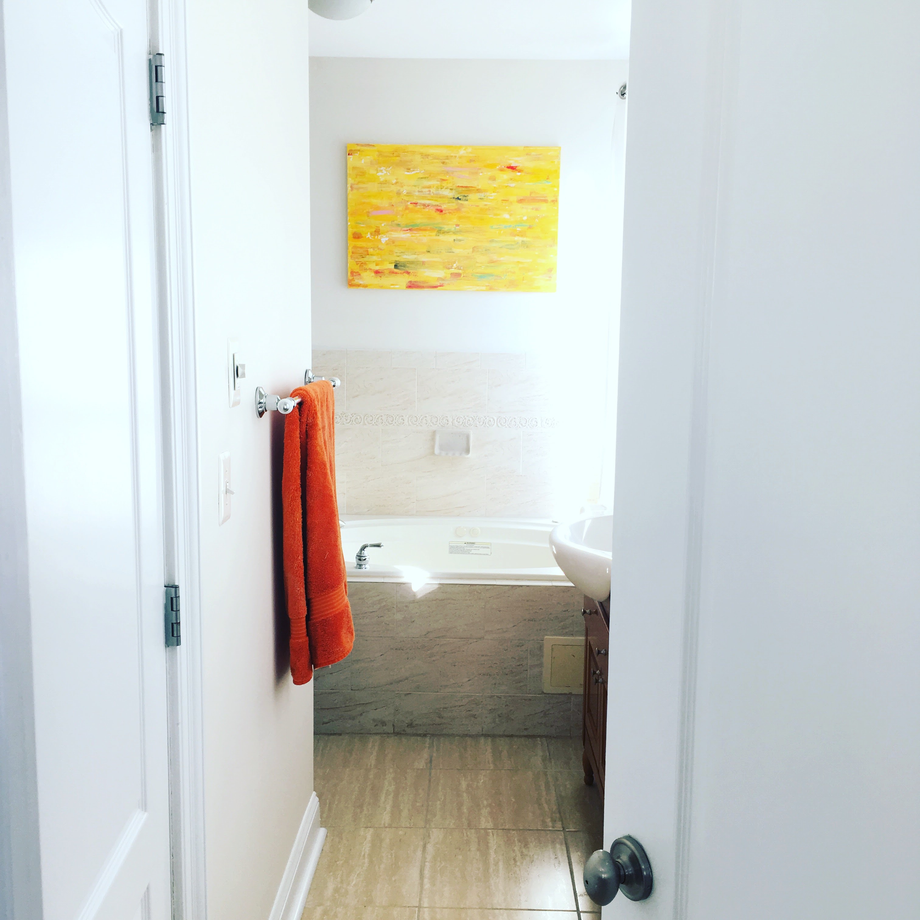 Painting wraps at the edges. Does not need to be framed. Ready to hang!