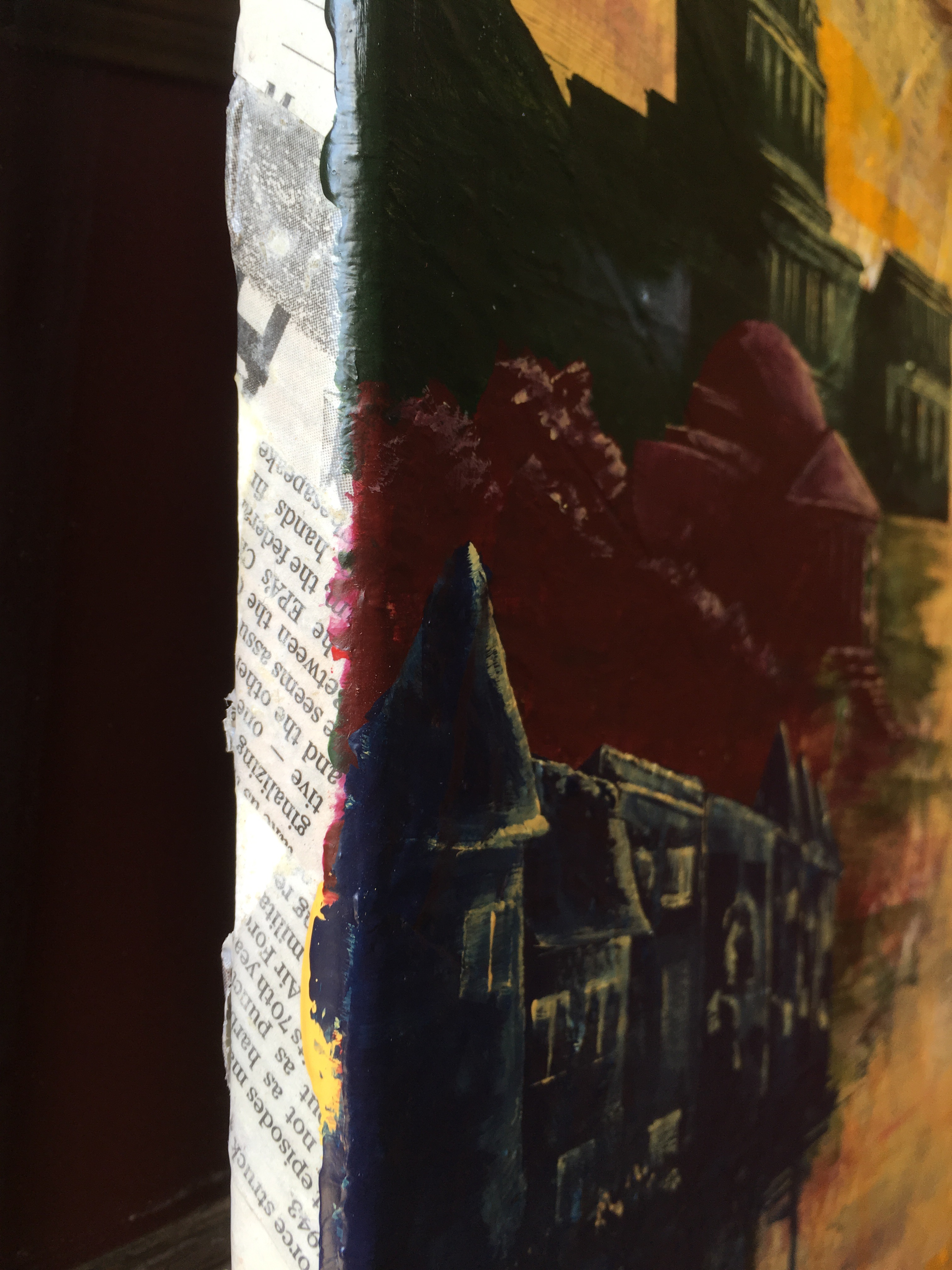 18 x 24, acrylic on newspaper papier-mache, on canvas. Two coats high gloss finish.